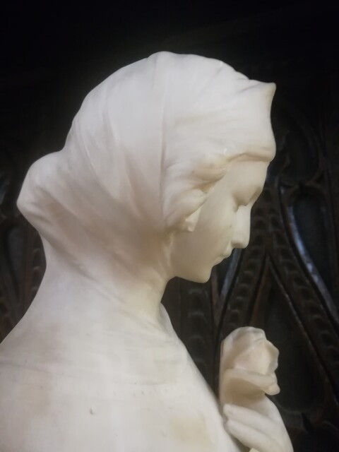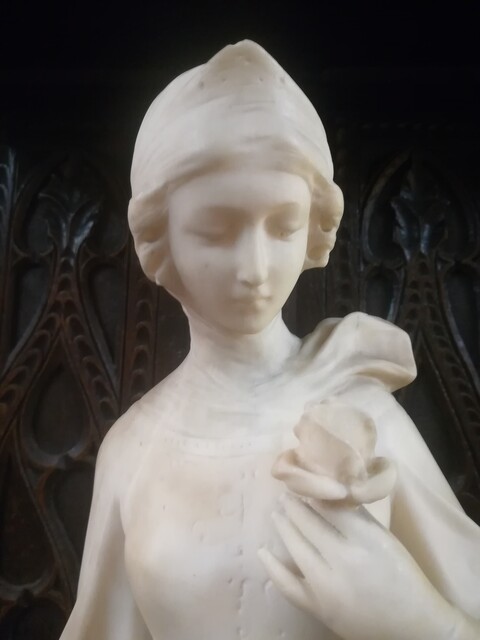 Alabaster signed « elegant rose» statue