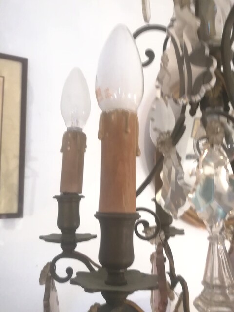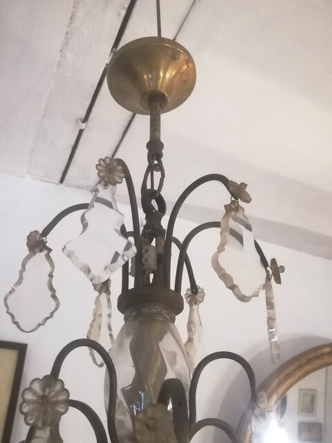 Brass and bicolor pendants 6 lights chandelier