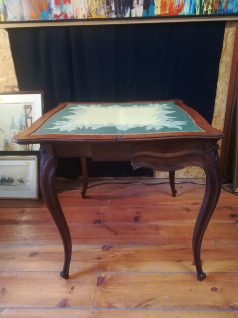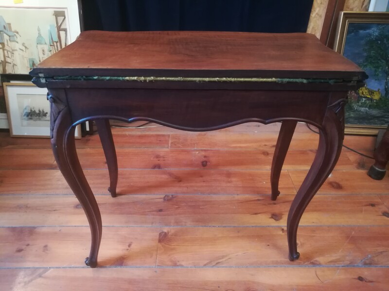 Carved walnut and felt in small dots Louis XV style game table