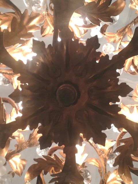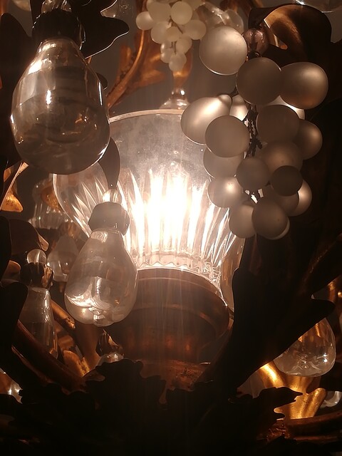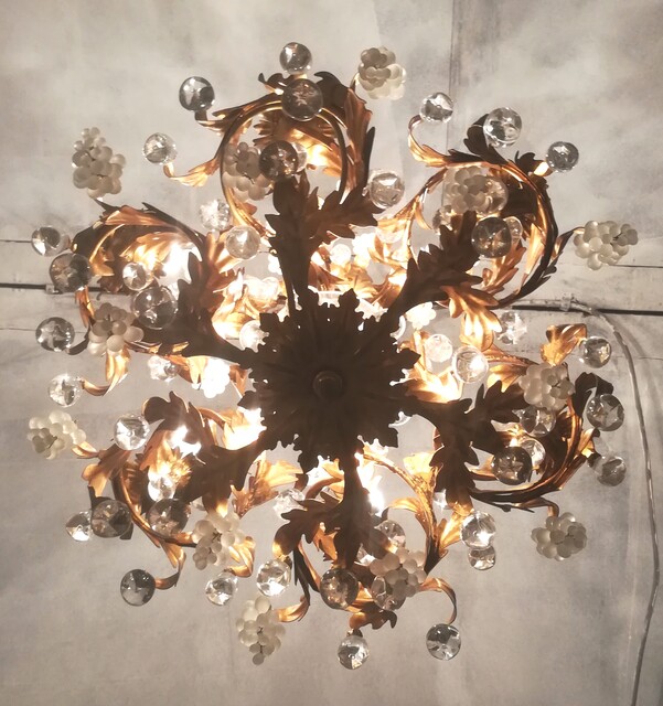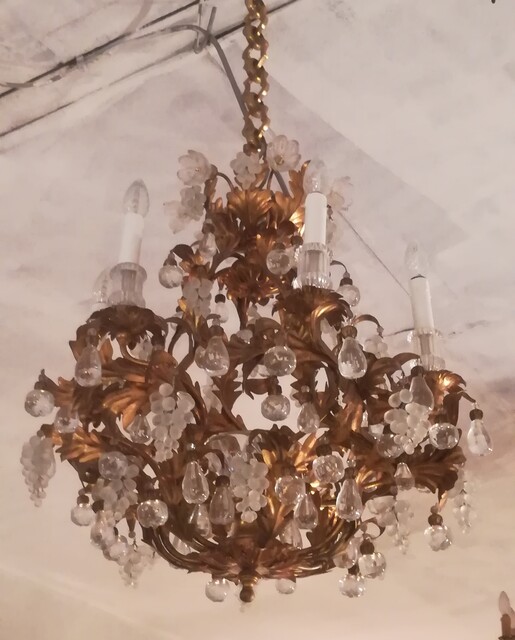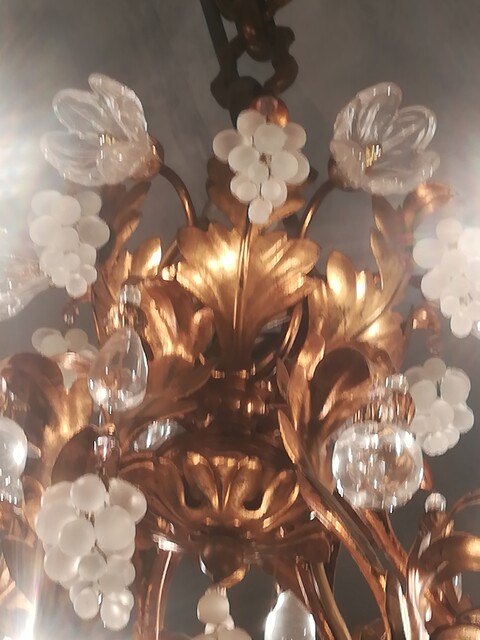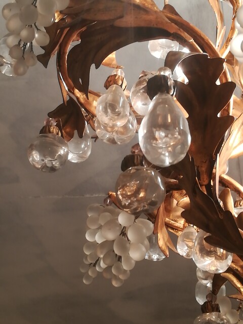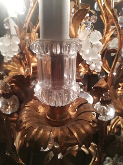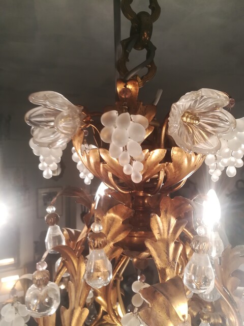 Crystal fruits and gilded metal 7 lights Murano chandelier