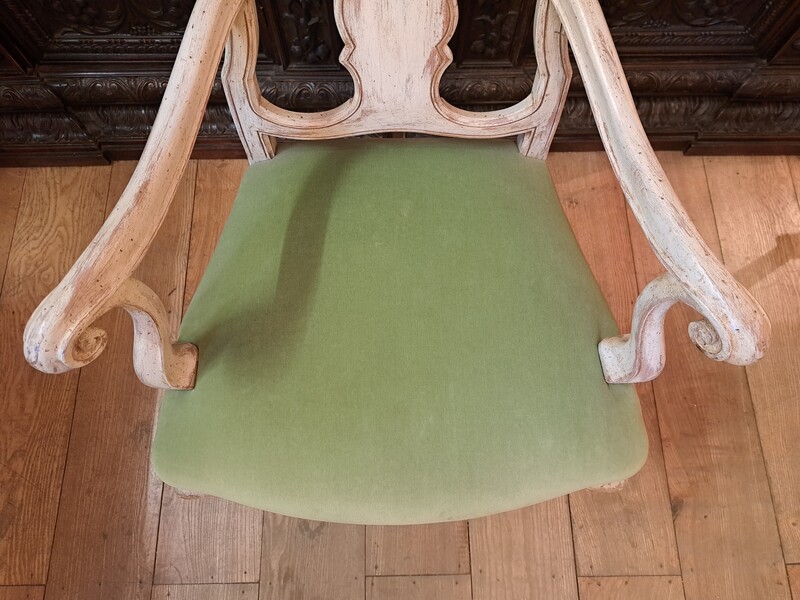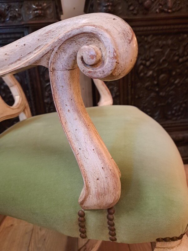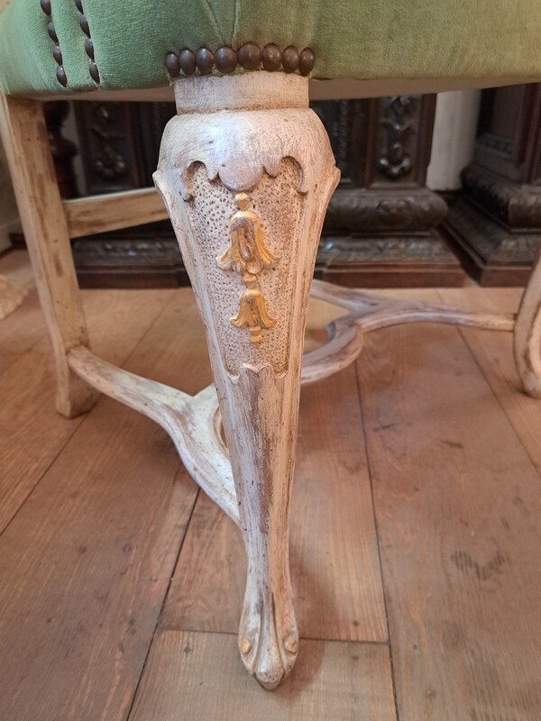 Painted wood and fabric pair of baroque armchairs and 1 chair