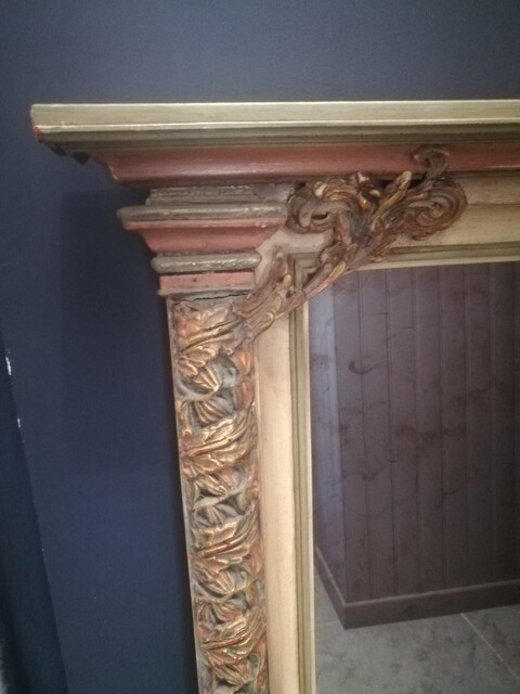 Polychrome wood and stucco with columns eglomised glass mirror
