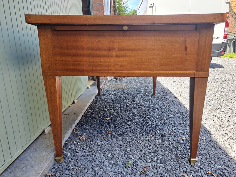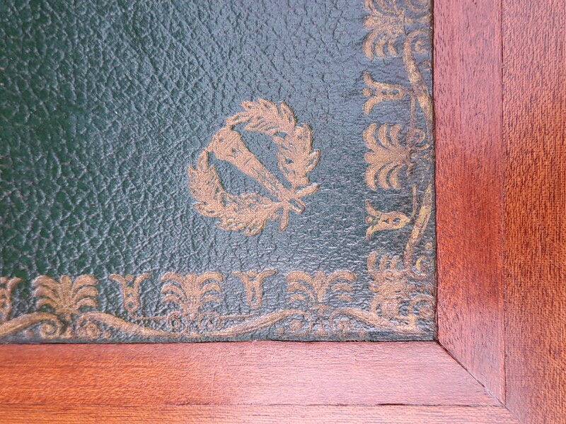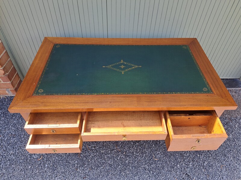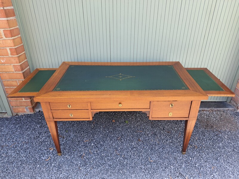 Restoration period desk in mahogany veneer with leather top
