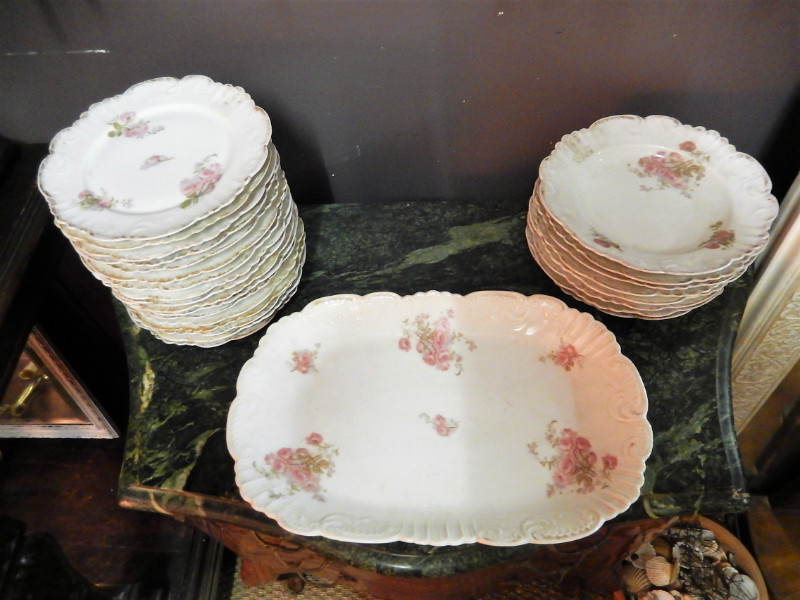 Set of porcelain plates with roses patterns